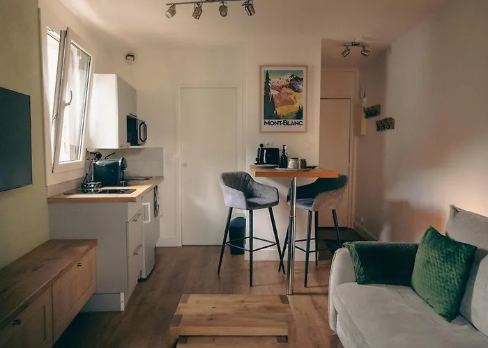 Det er et køkken udstyret med et køleskab og en brødrister. Aiguille du Midi busstoppested ligger inden for en 5 minutters gåturderfra.